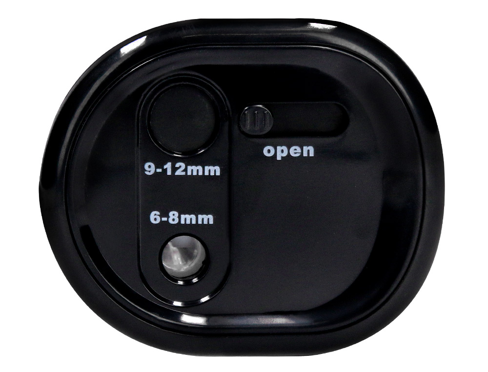 Capaz de afiar lápis com diâmetros de 6 a 12 mm.